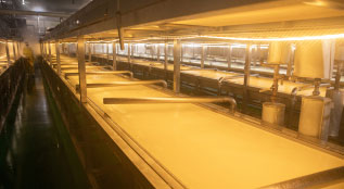 豆黃金是一家采用十萬(wàn)級(jí)空氣凈化設(shè)備、無(wú)菌化生產(chǎn)車(chē)間的企業(yè)。豆黃金也是一家采用日本八沖八洗工藝的企業(yè)。生產(chǎn)完腐竹后,用山泉水每天沖洗管道設(shè)備地面4個(gè)小時(shí)。豆黃金天然鮮腐竹只揭取豆?jié){前三層油皮,剩下的豆?jié){排出售賣(mài)給養(yǎng)殖戶(hù)。豆黃金采用智能化全自動(dòng)生產(chǎn)線(xiàn)。德國(guó)超微粒粉碎技術(shù):可以使大豆的蛋白質(zhì)分離達(dá)到有效利用,小分子蛋白制作腐竹,口感細(xì)膩,營(yíng)養(yǎng)易吸收。130度高溫煮漿(家庭及作坊是做不到的) 運(yùn)用到蒸煮豆?jié){中迅速有效的去除了大豆胰蛋白酶抑制素及皂昔對(duì)身體的不利影響物質(zhì),標(biāo)準(zhǔn)化生產(chǎn)工藝更科學(xué)。
