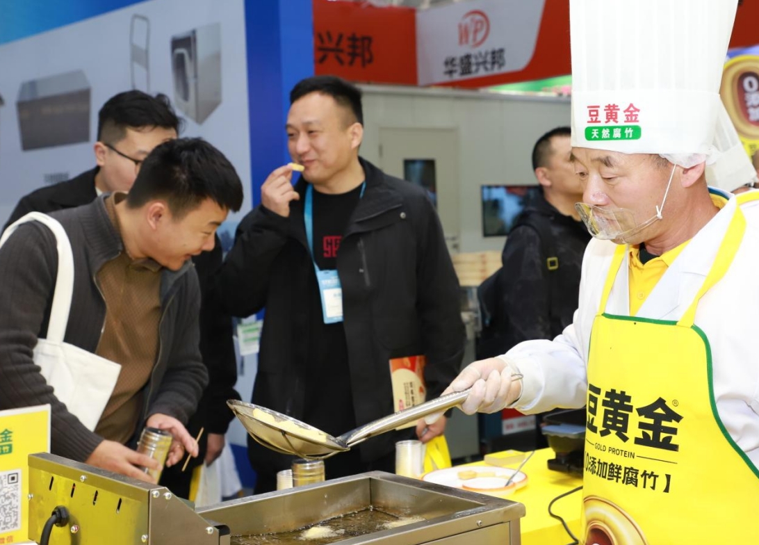 此次展會(huì)為期三天,作為參展商之一,豆黃金展示了現(xiàn)在受更多客戶(hù)喜歡的0添加的豆制品,黑豆豆花、包漿豆腐、鮮腐竹、豆泡等等很多產(chǎn)品
